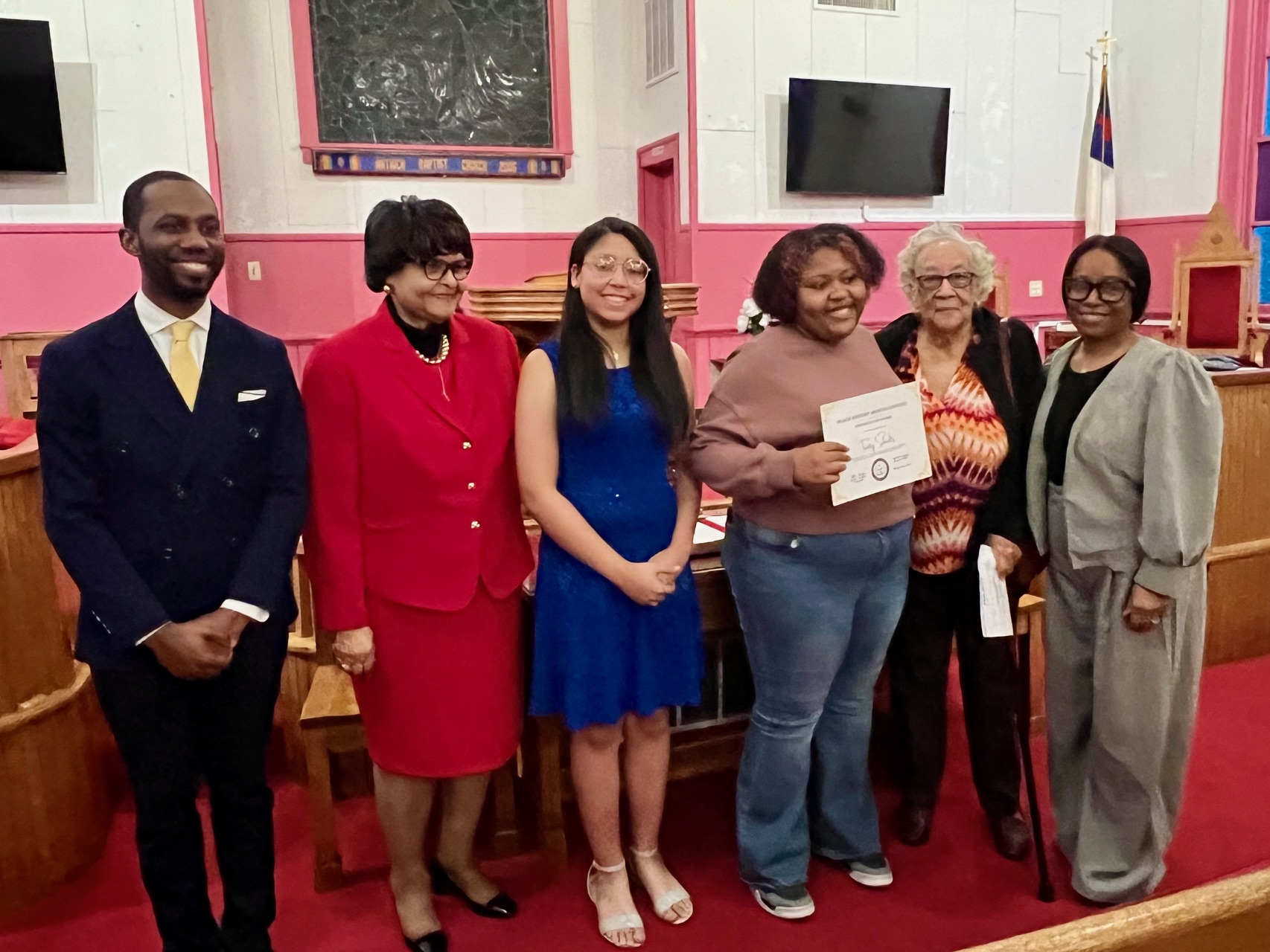 Top photo, l-r: Kaleb Hackley, NAACP Culpeper President; Sandra Chew; LaNiya Chew; Trinity Shoultz; LaVerne Shoultz; Dr. Mesha Jones, MCAAHA President